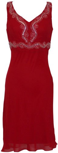 Flirty chiffon gown, flattering cut with swirls of hand beadwork on the bodice, glass beads, sequins and prongset Swarovski crystals, fully lined with soft stretch jersey, lightly padded bust, matching chiffon scarf. Hidden side zip. Junior size XS - XL, junior plus size 2X, 3X. Read more...