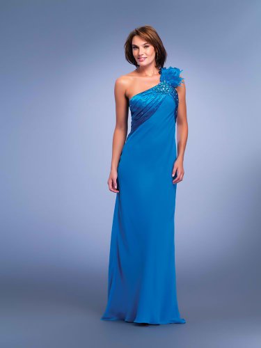 Free Shipping One Shoulder Blue Prom Dress with Feather Strap @ Amazon.com