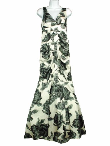 Bee Darlin formal dress in a print fabric. Dress features a double v-neck, back zipper with netting below knee to give the dress fullness. Read more...