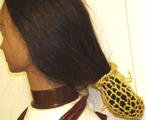Hand Crocheted Gold Metallic Gimp Dress Snood for Women and Teens Read more...