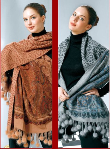 WRAP (CASHMERE)- REVERSIBLE PURE CASHMERE WRAP WITH MINK POM-POMS by CASHMERE PASHMINA GROUP Review
