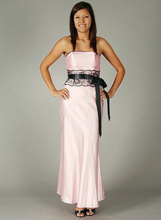 Floor length satin tube formal dress. Boned bodice with contrasting floral lace trim and satin rbbon adjustable tie waistline. Hidden zipper back. Fully lined. Matching satin shawl included. Length of Small formal dress from underarm: 50". 100% Polyester. Professional Dry Clean only. Made in USA. Read more...